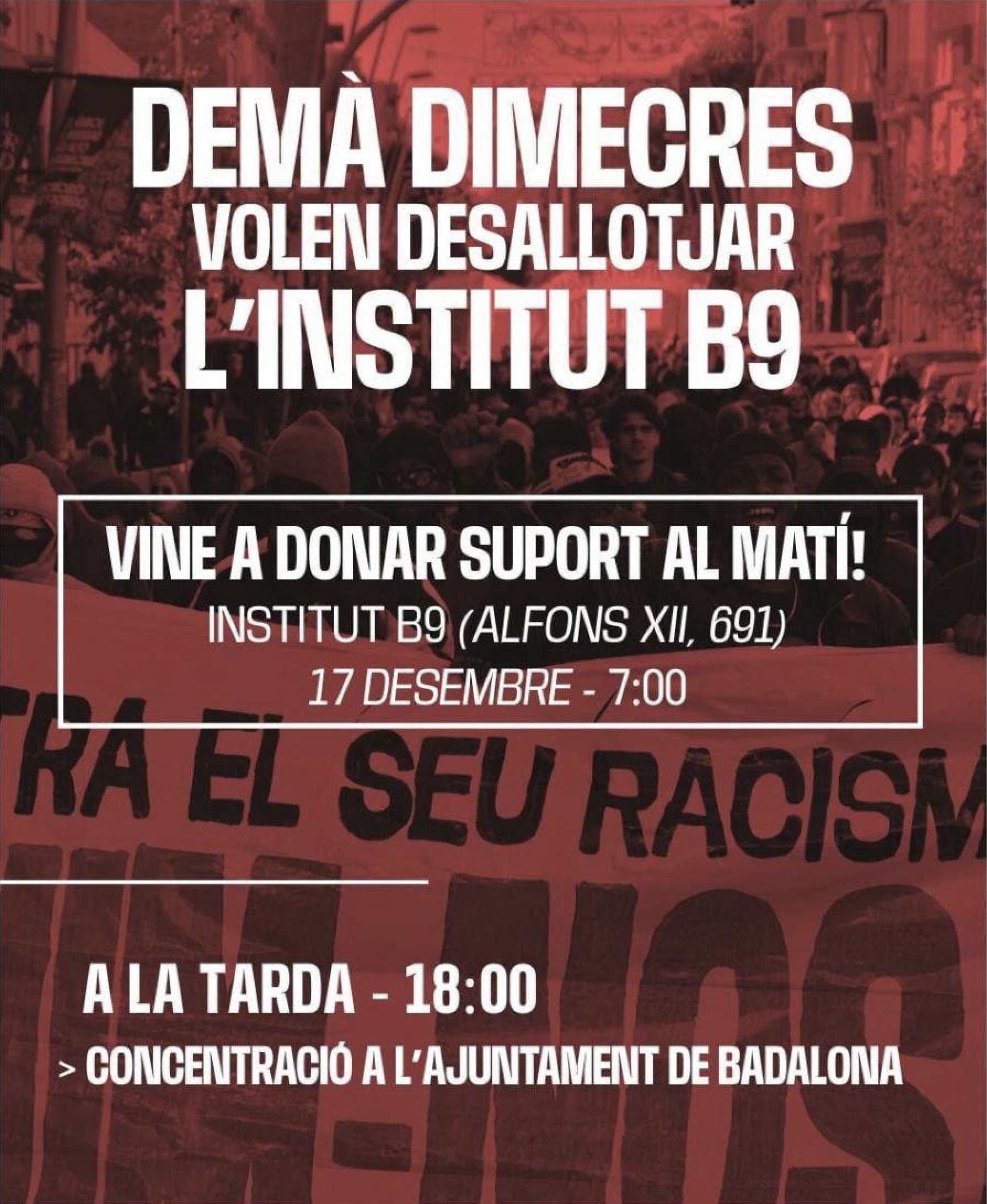 Concentració contra el racisme i el feixisme – desallotjament de l’Institut B9 a BadalonaPublicado el **